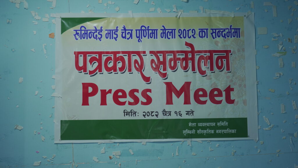 लुम्बिनी, रुपन्देही | चैत्र १६ — रुमिन्देई माई चैत्र पूर्णिमा मेला २०८२ को सन्दर्भमा लुम्बिनी सांस्कृतिक नगरपालिकाले पत्रकार सम्मेलन (Press Meet) सम्पन्न गर्दै मेलाको सम्पूर्ण तयारी पूरा भएको जानकारी दिएको छ।